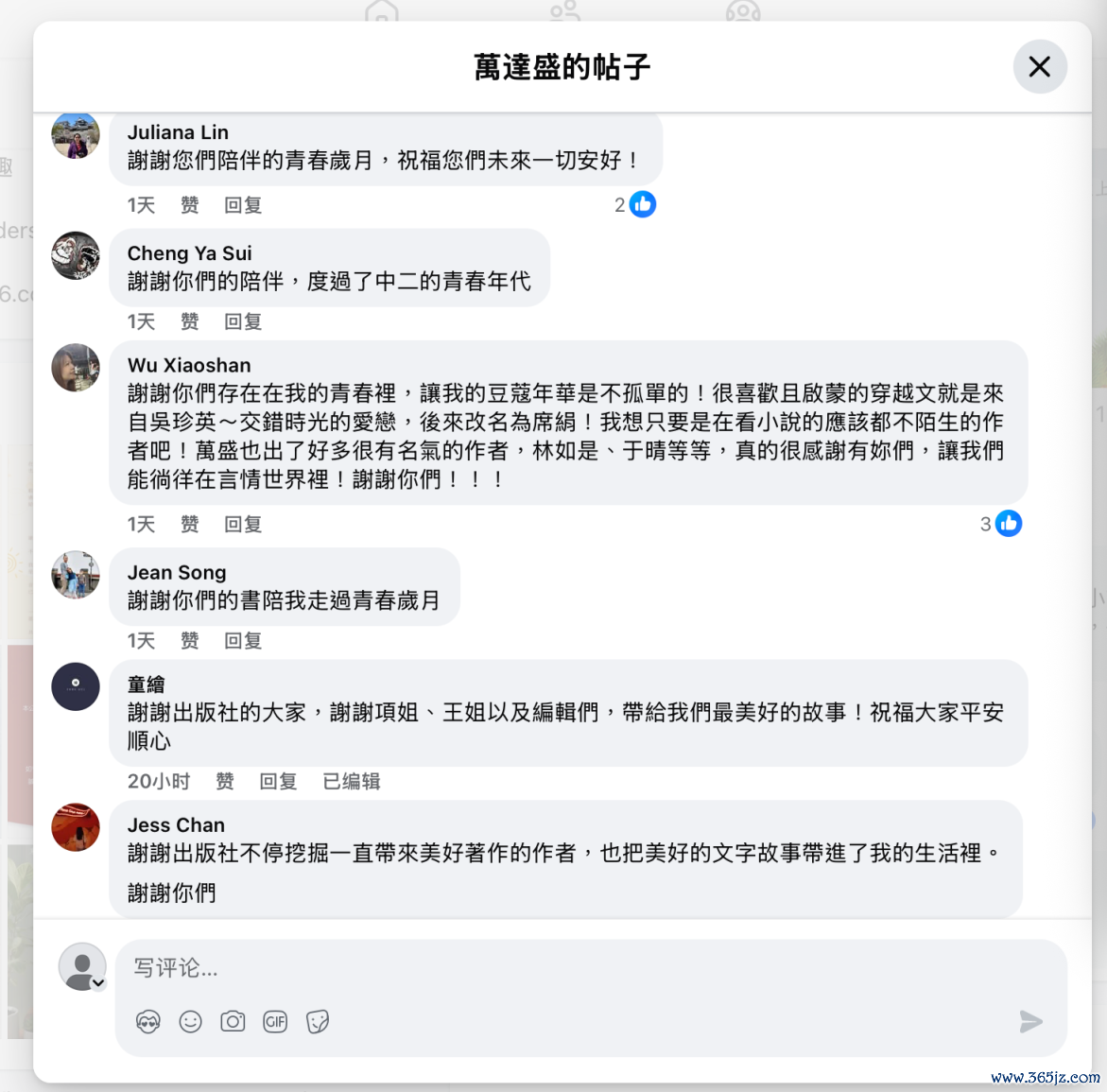 不论如何,言情演义陪同了一代东谈主的芳华和成长。思当年,万盛与狗屋/果树(林白出书社)、禾马、龙吟等出书方共同创造了台湾言情演义的“黄金期间”。然则出书环境和生态在变化,阅读习气和偏好也在变化,一代东谈主的芳华记挂注定会被封装,会被凝结。但就像那封告别信中说的,爱与笔墨不会袪除,总会在咱们的性掷中以另一种神志络续发光。